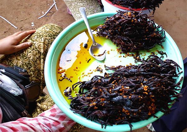 - 2014年10月9日大家都知道,蜘蛛其实是有毒的,而在柬埔寨,炸毒蜘蛛居然是一道当地小吃!位于磅湛省曾波雷区的素昆镇之中,这种把油炸过的蜘蛛当作特产点心沿街叫卖之奇景,对于经过这个小镇的观光客而言成为了一种地方名胜。柬埔寨素昆地区出产的一种黑色长毛毒蜘蛛成为了人们餐桌上的美味。当地小贩介绍说,生意好的时候,自己每天能卖出100-200个大蜘蛛。据介绍,这种蜘蛛只要配上大蒜和盐等调料,马上用滚油炸透,立刻就会变得香脆可...