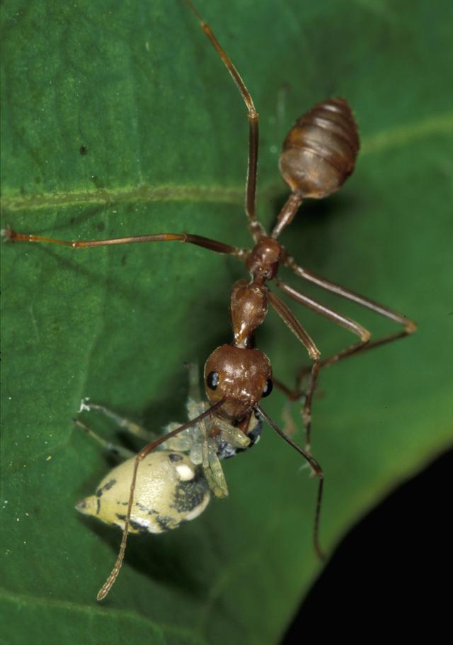 - 2014年3月12日蚂蚁是跳蛛反对好斗的毒液蜘蛛侵略时的一个保镖。一个胆小的跳蛛用蚂蚁的气味作为一个秘密武器,让自己免于成为毒液蜘蛛的猎物。而这个方法的缺点是跳蛛也是蚂蚁最喜爱的食物。新西兰坎特伯雷大学的XimenaNelson和RobertJackson研究发现,为了克服这个额外的危险,蜘蛛又取得了一个计划,那就是在蚂蚁巢附近落地。Nelson和Jackson在菲律宾国际水稻研究所在开展试点工作,观察一种跳蛛(Ph...