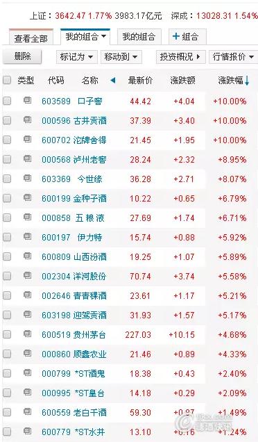 - 2016年1月19日快讯:白酒板块异动口子窖(603589)涨3%灯塔财经2016-01-1911:26:41新浪财经讯1月19日消息,周二早盘,白酒板块盘中异动。截至发稿,贵州茅台(600519)、口子窖(603589)涨3%,顺鑫农业(000860)涨2%,五粮液、古井贡酒(000596)等多股涨超1%。市场的大幅、快速下跌,白酒板块的相对收益明显,市场对白酒的关注度逐步提升。临近春节,贵州茅台(600519)、...