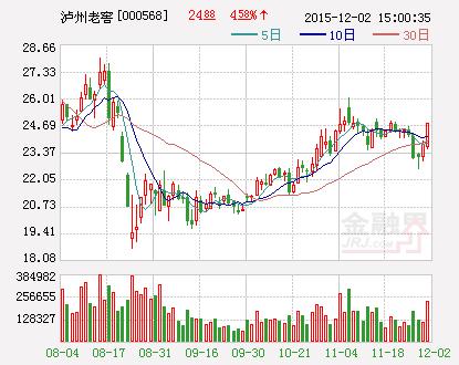 - 2016年1月4日金融界股票1月4日讯今日泸州老窖开盘报27.0元,截止收盘,该股跌7.85%报24.99元,当日振幅为7.71%,换手1.08%,成交金额为3.97亿元。5日内跌幅为7.11%。1月4日该股净流出金额8631.21万元,主力净流出7332万元,中单净流出1125.68万元,散户净流出173.53万元。最近一个月内,泸州老窖共计登上龙虎榜0次,表明泸州老窖股性不活跃。公司主要从事泸州老窖系列酒的生产...