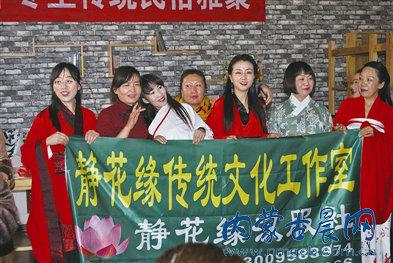 - 2015年12月30日一曲悠扬的古埙曲《阳关三叠》在御茶园茶楼徐徐传来,由乌海市静花缘汉服社和广大民俗爱好者组织的民俗雅集活动正在这里举行。“服章之美谓之华,礼仪之大谓之夏”。汉服是华夏民族的传统服装。现场六位身着汉服的女子伴随着悠扬的古乐展示了汉服、汉礼之美。汉服舞、插花、剪纸、古琴演奏、古埙、书法、吟诵诗歌、茶艺、讲解《九九消寒图》,这些有着浓郁文化气息的活动,吸引了无数人的眼球。活动现场参与活动的观众还收到了古代...