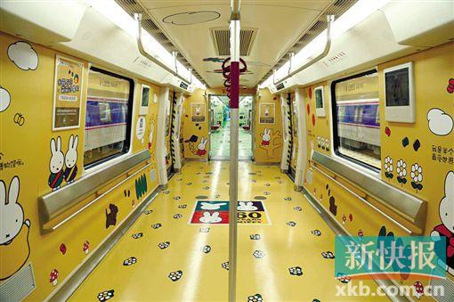 - 2015年8月5日广州地铁6号线米菲专列将开行一个月。广州6号线米菲专列(图片由广州地铁提供)广州地铁6号线继推出“浪漫专列”后,昨天(3日)起又来了Miffy(米菲)专列啦。这趟列车将在金沙洲、越秀和荔湾等老城区以及天河客运站等地穿行一个月,很可能经过你家门口哦!幸福的旅途就是来得这么突然。米菲萌萌哒。这列卡通艺术专列是全球首列Miffy地铁。今年是广州地铁开通运营18周年,也是来自荷兰的Miffy诞生60周年,...