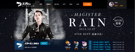- 2016年1月21日A-A+还记得十年前《浪漫满屋》里那个跳着《三只小熊》的李英宰吗?还记得舞台上光芒四射的郑智薰吗?是的,他来了!12月27号火秀tv素人演唱会的舞台迎来我们万众瞩目的亚洲舞王Rain。火秀tv素人演唱会:亚洲舞王Rain震撼来袭是什么吸引我们的亚洲舞王来到火秀tv素人演唱会现场?原因显而易见,众人皆知近年来的音乐市场走势低靡,在流通和版权方面,互联网饱受诟病,在线演唱会对于传统音乐产业是碾压排挤还...