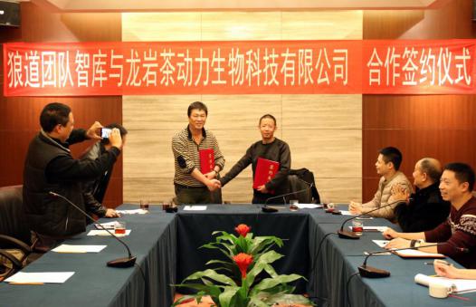 - 2015年12月30日狼道团队智库自2007年服务百雀羚以来,至今已协助多家日化品牌成为行业翘楚。12月22日下午3时,狼道团队智库与龙岩茶动力公司在天河区中信广场会议室举行签约仪式。中国十大杰出策划公司狼道团队智库创始人、亚洲策划行业十大创新人物杨轲,龙岩茶动力生物技术有限公司董事长许朕野、副总经理蒋世清、邱维权等出席签约仪式。(图为茶动力董事长许朕野和狼道团队智库董事长杨轲签约现场)茶动力许朕野董事长表示:龙岩茶动...
