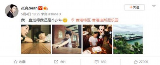 - 2018年5月6日5月4日,张亮在个人社交平台发自己和儿子天天的照片。定位为香港迪斯尼乐园。图片里,张亮和天天笑得很开心,他还和园区的米老鼠甜蜜倚靠合影。并配文,“我一直觉得我还是个少年”。【1】【2】【3】【4】【5】(责编:邱烨、帅筠)...