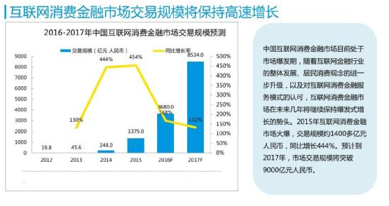 - 2018年3月26日近年来,在“互联网+”和“消费升级”浪潮的推动下,消费金融得以迅速崛起,成为国内经济转型升级的新风口。中国消费金融市场的广阔前景受到各大行业巨头的火热追捧。消费金融这块“大蛋糕”,正在成为群雄逐鹿的新战场。据相关资料显示,从2013年到2016年短短四年时间里,消费金融的交易量就从60亿猛增到了4367亿,年复合增长率高达317.5%,中国至少还有数万亿级别的消费金融市场有待开发。如此庞大的市场规...