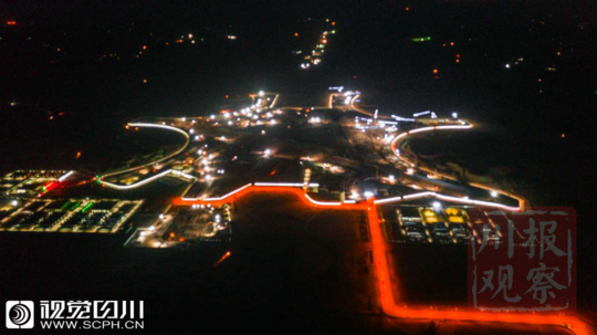 - 2018年3月20日川报观察记者何海洋摄影报道3月13日入夜,从高空俯瞰成都天府国际机场建设夜景,由航站区施工围挡灯带勾画出正在建设的大体轮廓,具有成都特色的太阳神鸟图案正在逐步形成。为了实现“确保成都天府国际机场2019年基本建成、2020年投入运营”的目标,,经过建设者的日夜奋战,60多万平方米的航站楼雏形正一点点显现。目前,成都天府国际机场全场的地基处理已完成。截至2018年3月11日,航站区累计完成7572根...