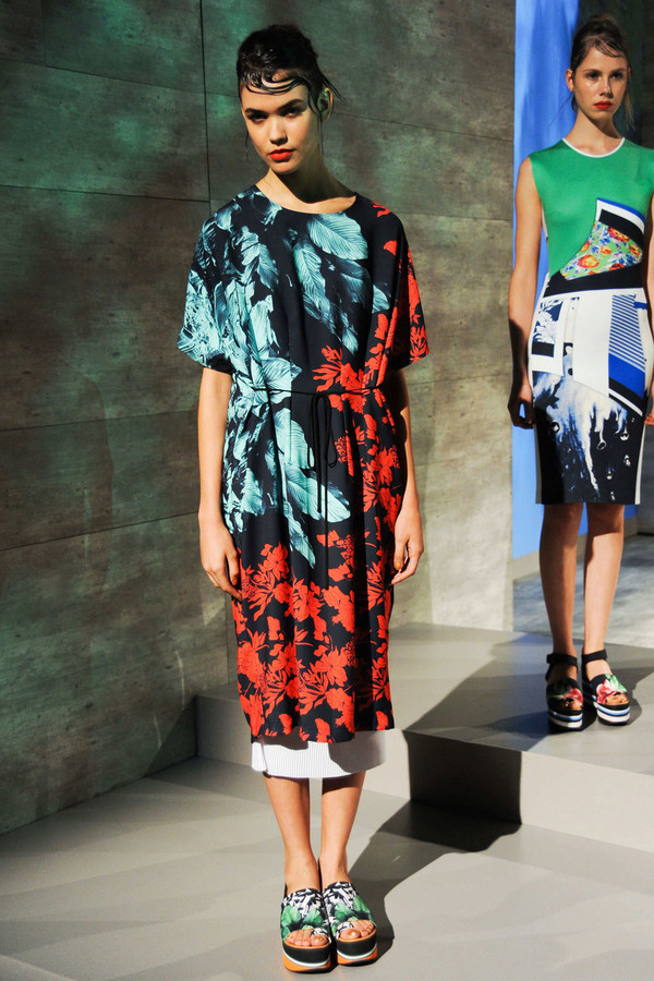 - 2018年3月13日点击这里进入专题>>2015春夏纽约时装周海报全报道CloverCanyon素来以鲜明的色彩与生动的印花著称,因米歇尔·奥巴马(MichelleObama)的青睐而在国际上声名鹊起。2015年春夏纽约时装周,这个非常年轻的美国本土品牌展示了它的2015春夏时装系列。依然是鲜亮的印花,但加入了几何和3D效果图案,感觉更加摩登。服装廓形借鉴日本传统服饰——和服与武士道袍,渗透含蓄儒雅的东瀛风情。多彩的...
