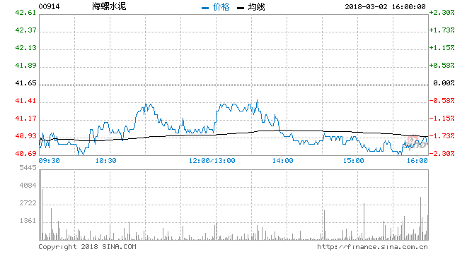 - 2018年3月3日热点栏目资金流向千股千评个股诊断最新评级模拟交易客户端海螺水泥(00914)H股现价下跌1.92%,逼近50天线(40.498元),最新报40.85元,主动沽盘65%;成交约216万股,涉资8824万元.按现价计,该股两日内累跌约3%。A股(沪:600585)现价32.26元人民币,下跌0.87元人民币,或下跌2.63%,成交3.00亿元人民币,涉及926万股.现价A股对H股呈溢折让2.4%。现时...