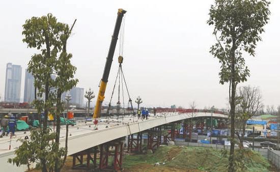 - 2018年1月31日工人正在横跨天府大道的锦城绿道桥上施工摄影记者王红强1月26日下午,随着最后一段钢箱梁稳稳落放,横跨天府大道、连接桂溪生态公园东西两侧的绿道桥——“月牙桥”整体合龙。合龙之后,“月牙桥”将进入路面铺设、加装栏杆等附属结构施工阶段,预计2-3个月内将建成通行。据锦城绿道项目总经理郑伟盛介绍,所谓绿道桥,实际是地面绿道的延伸。桥梁两端连接着地面,行人可以直接从地面绿道骑行上桥。桥身坡面更缓,也更有利于...
