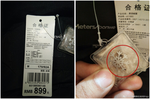 - 2018年1月27日双十一,你的快递都收到了吗?伴随着一股冷空气的到来,全国大部分地区纷纷入冬,羽绒服成出门必备。近日,不少网友在微博上称其双十一购买的羽绒服还没有发货!而几家欢喜几家愁,市民王先生满心欢喜收到羽绒服,但却惊呆了,羽绒服标样里竟暗藏一只不明昆虫!羽绒服里暗藏虫子客服:把它拿掉就可以了近日,市民王先生双十一在天猫上网购了一件美特斯邦威的羽绒服,价值899元,打开包裹时,却被惊呆了,羽绒服标样里竟藏了一只...