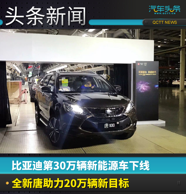 - 2018年1月10日今日(1月9日),在比亚迪深圳坪山工厂,随着一辆比亚迪唐100正式驶下生产线,比亚迪达成了生产30万辆新能源车的全新里程碑。从2008年比亚迪正式推出电动汽车F3DM以来,10年时间,新能源汽车市场经历着坐火箭般的飞速发展。比亚迪也在新能源汽车领域积极发力,并且逐渐展现出强大的竞争力。随着30万辆新能源车的制造目标达成,比亚迪在新能源车型上面的发展将进一步提速。●下线车型简介:唐100唐100是比...