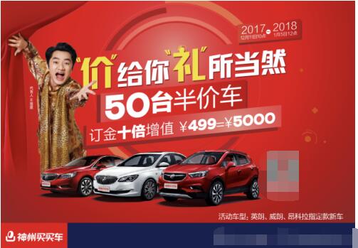 - 2018年1月7日时间向前,转眼间2018年款款而来,你是否准备好为生活加点料,为自己和家人开启一段崭新的旅程?神州买买车携手多款新车横跨新年,给你带来新年新气象。即日起,喜欢别克英朗、威朗、昂科拉新车的消费者可在神州买买车天猫旗舰店拍下并支付订金499元,且在核销购车时间内到全国任一神州买买车线下实体门店核销并最终购车成功的客户,可享受订金499抵5000元,订金10倍增值优惠活动。选购别克英朗的准车主还有机会获...