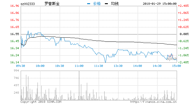 - 2017年12月31日2017年12月05日临近收盘14时50分,罗普斯金(002333)出现异动,股价大幅下跌7.0%。截至发稿,该股报12.23元/股,成交量2.090万手,换手率0.43%,振幅8.59%,量比0.98。最近一个月中,该股共计登上龙虎榜1次。最新的三季报显示,该股于2017年9月30日实现营业收入7.52亿元,净利润-1210万元,每股收益-0.02元。过去一年内该股有4次涨停,涨停后第二交易日涨...