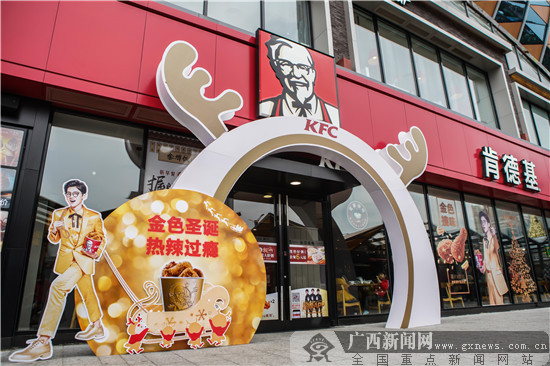 - 2017年11月28日南宁航洋肯德基金色圣诞季主题餐厅的造型相当吸睛。肯德基供图餐厅内的“金色圣诞季”让人忍不住拿起相机。肯德基供图活动嘉宾们享用美食前用手机为高颜值美食疯狂拍照。肯德基供图嘉宾们相互交换小礼物。肯德基供图香气四溢的热辣薯片脆皮鸡。肯德基供图口感清新的圣诞血橙双炫派。肯德基供图又是一年圣诞节来袭。圣诞雪花飘落、铃铛儿响、白胡子的圣诞老人、满载惊喜礼物的麋鹿……承载着美好祝福的圣诞气息正扑面而来。而肯德基...