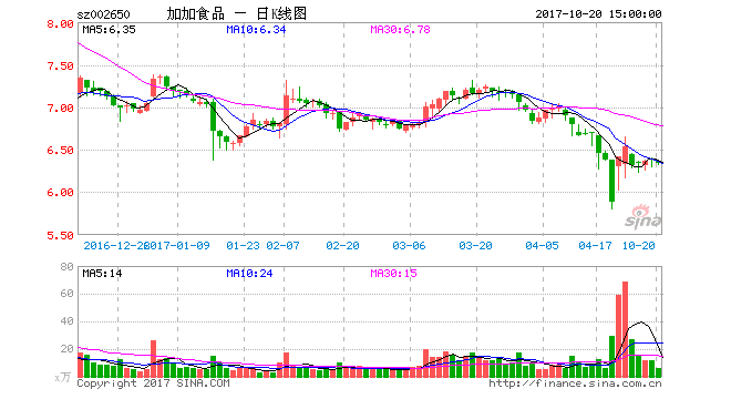 - 2017年10月21日热点栏目资金流向千股千评个股诊断最新评级模拟交易客户端“云锋有鱼杯”港股模拟大赛火热开赛,报名交易即有可能赢取60万大奖!【点此报名】加加食品最新公告显示,在停牌近半年后,公司定于10月12日复牌。10月11日,加加食品召开关于终止重组的投资者说明会,就终止收购辣妹子食品股份有限公司(下称“辣妹子”)一事对投资者的问询作出答复。加加食品在回答投资者提问时重申,今后将持续做大做强调味品产业链,突出“...
