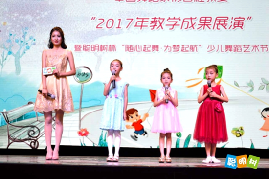 - 2017年9月4日2017年7月8日,第十一届聪明树杯“随心起舞为梦启航”少儿舞蹈展赛在北京市东城区影剧院圆满落幕。来自全国的百位选手参加,其中,河津聪明树幼稚园、北京市悦童国际幼稚园、北京燕郊小舞星艺术中心获得了聪明树杯艺术节“年度最具影响力品牌名校”称号。沈桐,方华珺,宋佳婧三位小朋友获得艺术节“2017年度闪亮小主持人”奖项。参演小演员们也分别获得了“最具潜力奖”、“最佳才艺奖”、“最佳表演奖”等奖项。本次大...