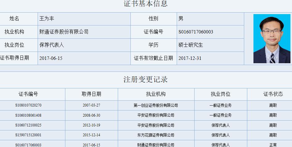 - 2017年9月2日()消息明牌珠宝(002574)8月17日晚间公告,近日,公司收到财通证券《关于更换浙江明牌珠宝股份有限公司持续督导保荐代表人的函》。财通证券原委派的保荐代表人韩卫国先生、王俊先生因工作变动原因不再担任该项目持续督导的保荐代表人,财通证券决定委派王为丰先生、戴中伟先生接替许韩卫国先生、王俊先生担任该项目持续督导的保荐代表人,履行保荐职责。财通证券是浙江明牌珠宝股份有限公司首次公开发行A股股票并上市...