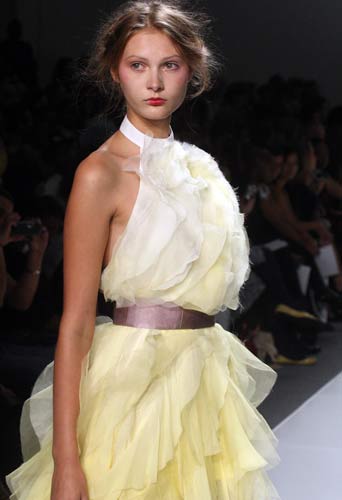 - 2017年9月1日2009年9月的纽约春夏时装周是在美国金融帝国崩溃的背景下开展的。时装周结束才几天,美国第四大投资银行雷曼兄弟倒闭,公司的总部距时装周的会场曼哈顿中城布莱恩公园仅两条街之隔。华尔街的动荡使今年的时装周少了几分热闹。这不仅体现在本季纽约时装设计偏向简洁,一改去年的奢华繁复,而且连秀场也比往年少了两个T台。但是在时装周的最后一天,一位中国女设计师的亮相却给客人们带来惊喜。38岁的深圳设计师罗峥带着她的...
