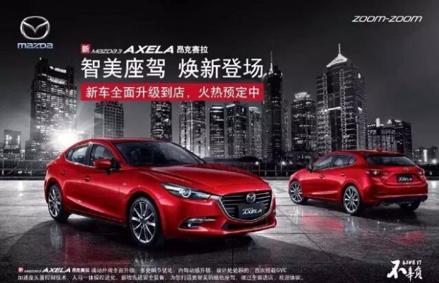 - 2017年8月29日马自达3昂克赛拉自上市以来其高颜值,高性能,超省油,强操控性等俘获了一片好评,销量更是一次次刷新世界的眼光。现2017款Mazda3AXELA即将上市,山西马博士全面接受预定!!2017年1月全国限量2000台,先订先得哦!新车的头灯造型更加方正,头灯边缘与中网的结合处更为流畅,前后保险杠造型在经过微调后则更具运动化气息。此外,新车还采用了由镀铬条包裹的转向灯,后视镜也集成了LED转向指示灯。新车...