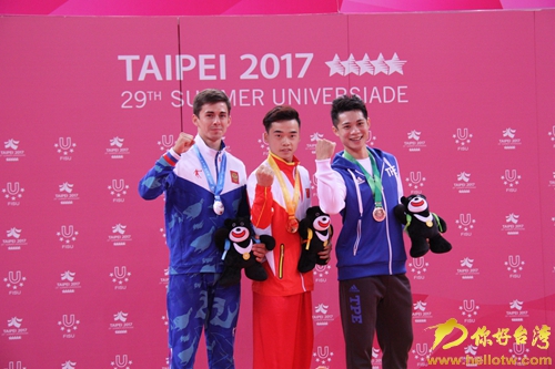 - 2017年8月28日你好臺灣網新竹8月27日消息(記者朱新宇謝良建)2017臺北世大運武術套路比賽今天在新竹縣決出兩枚金牌,中國隊的李孟南和中國澳門隊李禕分別獲得男女長拳冠軍。中國隊李孟南(中)與銀、銅牌選手合影(你好臺灣網圖)來自蘭州大學的李孟南在比賽中連續跳躍翻騰,動作瀟灑規范,整體實力明顯高出一籌。唯有一個抱拳下蹲動作略有晃動,顯示出這位首次參加國際大賽的年輕選手還是有些許的緊張。好在他未受影響,後面動作幹凈利...