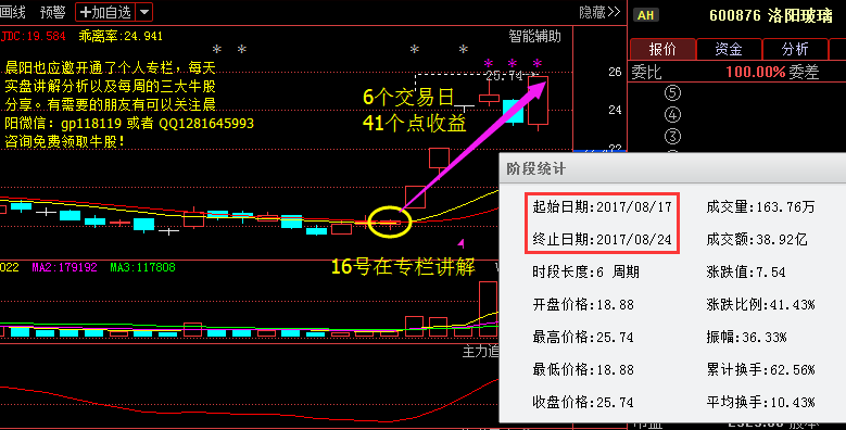 - 2017年8月27日预知【浙能电力+贝因美+中国中期】未来3天的后期走势,加晨阳个人微信号:【gp118119】晨阳金融:国家级注册高级金融分析师。本人深耕股市十余年,能精准捕捉个股中的主力资金动向,尤其善于抓牛股,本人看好的股票基本都会在专栏讲解。如果你踏不准节奏,把握盘面动向,那么就要认真的像晨阳学习学习,看看晨阳是如何选股,如何抓大牛。闻道有先后,术业有专攻,问路才不会迷路!熟悉晨阳的朋友都知道,本人深入股市数...
