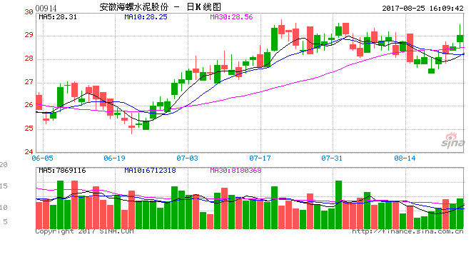 - 2017年8月25日申万宏源8月25日发布海螺水泥研究报告,报告摘要如下:业绩创历史新高,量价齐升,超申万宏源预期。公司发布2017年半年度报告:报告期内,公司实现营业收入为319.08亿元,同比增加33.10%;实现归母净利润67.17亿元,同比增加100.21%;EPS1.27元,超申万宏源预期。增量主要来自:(1)销量增长:上半年公司水泥及熟料销量1.34亿吨,同比增长4.60%;其中2季度销量约7500万吨,...