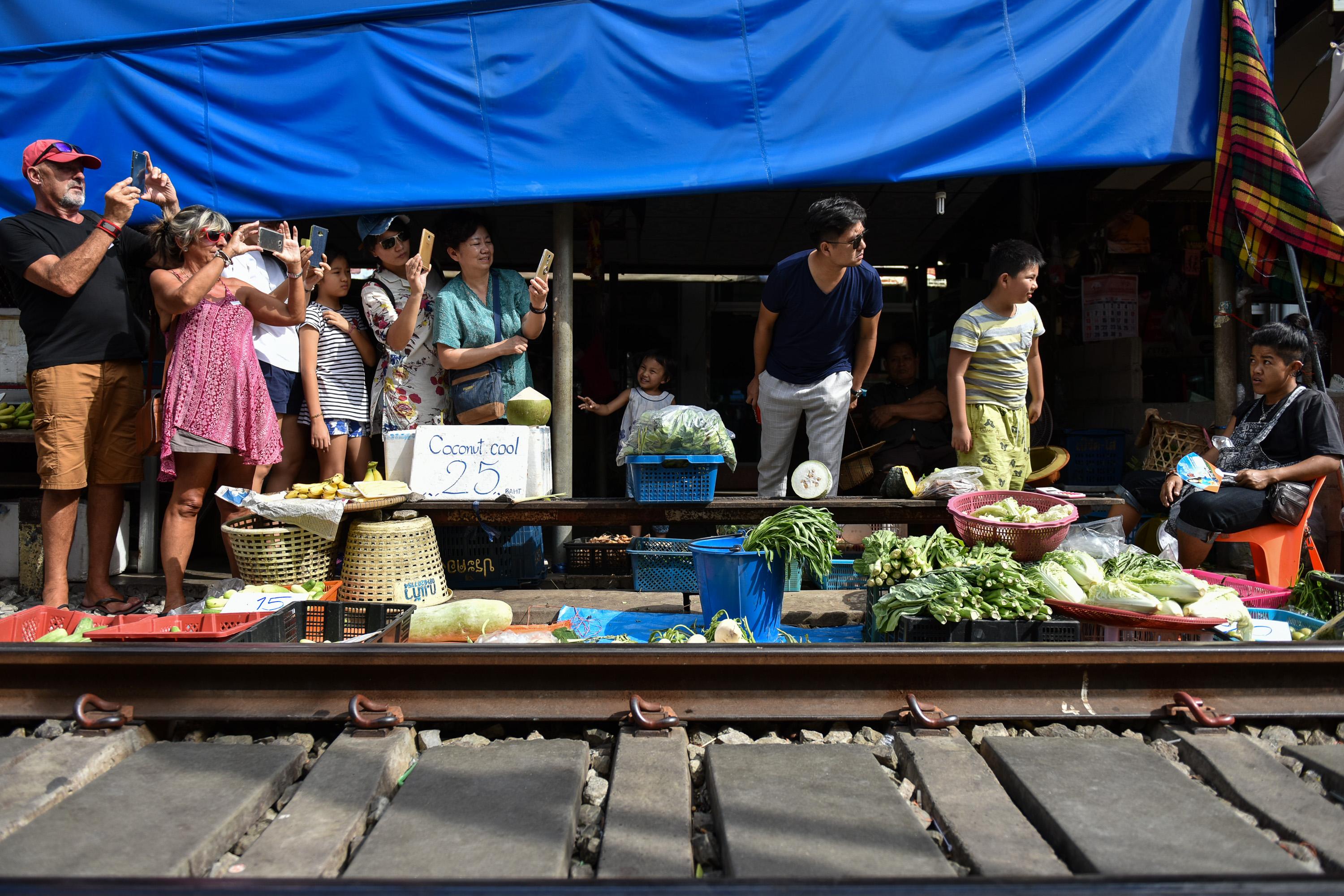 - 2017年8月22日(原标题:美功市场:铁轨两旁的繁荣)美功市场位于泰国中部沙没颂堪府美功县,每天都有从美功火车站开出的列车穿梭于市场间。摊贩们有时会把蔬果和海鲜临时铺放在铁路上,等火车快来时再收起遮盖铁轨的遮阳棚,清理摊放在轨道和路基上的货品,顾客们也会很自觉地避让在一边,等火车从自己面前不足一米距离的地方缓缓驶过。火车几时几分从哪个方向来,一天有几班列车从这里经过,对于这里的人们,早已烂熟于心。在这里,铁轨不再只...