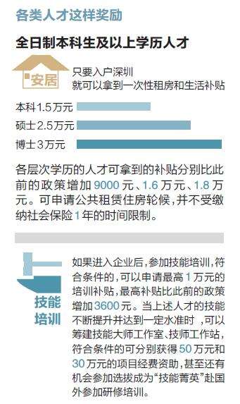 - 2017年8月17日每年深圳市财政用于人才工作的预算将达44亿元,新增23亿元,对于在深或有意入深的贤能来说,这无疑是个“大礼包”。今天,我们不妨一起拆开这个大礼包,看看有哪些福利。深圳才子才女看看你能领多大红包技能培训、自主创业、科研开发等诸多方面都有奖励补贴近日,深圳出台了《关于促进人才优先发展的若干措施》,提出20个方面81条178个政策点,在各类人才培养与引进、人才安居保障、人才载体培养、招才引智工作机制、人...