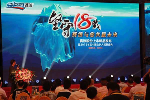 - 2017年8月13日8月18日,“赛浪股份上市新品发布暨2015年度中国合伙人招募庆典”在北京玛雅岛酒店隆重召开。“赛浪公司”此次在北京股权转让系统上市,作为中国汽车后市场O2O第一股,为集团公司的发展奠定了雄厚的经济基础。出席本次发布会的有来自全国工商业联合会汽摩用品配商会、中国汽车后市场联合会、中国窗膜协会、中国扶贫基金会、中国新三板企业家协会、广东汽车用品协会等单位、行业组织的领导;清华大学品牌顾问、中科创投基...