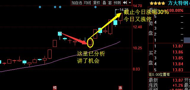 - 2017年8月12日在前几天的文章中,我一直都在讲钢铁板块,包括最初的方大特钢、西宁特钢让大家多关注,都是低位讲解过后,目前都还是在大涨中的,这就是顺势而为,哪个板块火爆就提前布局,而今天钢铁板块再次继续爆发,全线领涨。需要的朋友可以加木易微信:【499080483】或者加木易q:499080483其中我多次讲到过的西宁特钢,今天冲高之后表现的也不错,成功布局的人都知道,该股在17号讲解的。当时讲解的时候,股价是处于...