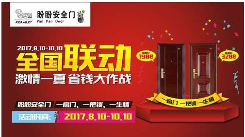 - 2017年8月12日盼盼防盗门激情夏日促销爆款低至1988元!正值装修旺季,为了让更多在炎炎夏日选购防盗安全门等系列产品的消费者少一些奔波与疲惫,多一些选择与实惠,亚萨合莱盼盼特别推出多款热销特价新品,为广大消费者送上一抹夏日的清凉。8月6日,“中国防盗门之父”——亚萨合莱盼盼在成都顺利举行了主题为“激情一夏·省钱大作战”的西南地区联动促销启动会,各地经销商踊跃参与。据了解,促销活动将于8月10日正式拉开帷幕,并将持...
