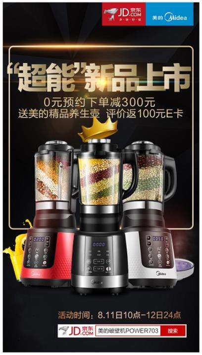 - 2017年8月11日(原标题:美的“超能”破壁机全新上市联手京东开拓高端市场)2017年8月1日,美的生活电器与京东家电在京东总部联合举行“科技美的,品质京东”秋季新品发布会。发布会上,美的生活电器一举发布三款“超能”系列破壁机Power701、702、703,意欲联合京东挺进国产破壁机高端市场,为中国消费者带来更完美的料理体验。近年来,以破壁机为代表的料理类产品市场发展迅猛。据奥维云网数据显示,2016年料理机零售...