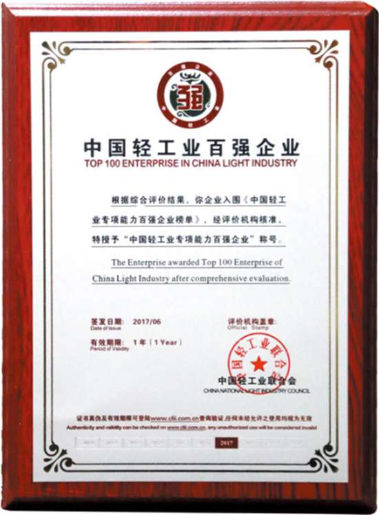 - 2017年8月9日2017年6月20日上午,由中国轻工业联合会主办的“智慧轻工”高峰论坛暨中国轻工业百强企业颁奖盛典在北京中国职工之家隆重举行。1000多名来自中国轻工行业的代表和政府、协会部门领导、专家共同出席了此次会议。会上,蒙娜丽莎集团凭借近年来杰出的经营业绩,获得“2016年度中国轻工业百强企业”荣誉称号。“中国轻工业百强企业”是中国轻工联合会举行的一场年度评价活动,旨在促进轻工企业提高市场竞争力,鼓励轻工...
