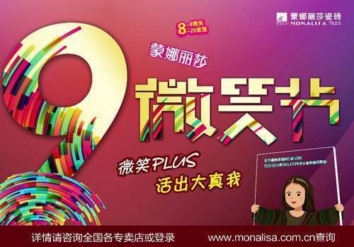 - 2017年8月9日原标题:微笑PLUS,致真我!第九届蒙娜丽莎微笑节震撼来袭蒙娜丽莎瓷砖第九届微笑节官方海报蒙娜丽莎集团,二十六年独具匠心,全心全意服务数百万家庭用户,为您打造高品家居生活。8月8日-8月28日,蒙娜丽莎微笑节,迎来了第九届品牌盛典。每一个笑容里都承载着自己对理想家园的期许,第九届蒙娜丽莎微笑节,盛夏之日,微笑plus,邀您放飞真我,活出真我,五大真我从心优惠,给您一个梦想之家。一、至通透,致真我!...
