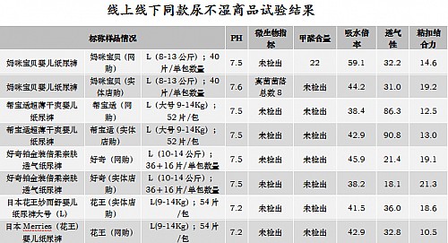 - 2017年8月7日-中国消费者报天津讯(记者万晓东)近日,天津市消费者协会发布婴幼儿纸尿裤比较试验报告。受检的34件样品全部符合纸尿裤国家标准,但透气性、甲醛含量、吸水倍率等方面差距较大,标称品牌为妈咪宝贝的样品线上线下商品质量不一。-本次比较试验34组样品由天津市消协工作人员和3·15志愿者在实体店及网上购物商城随机购买,包括妈咪宝贝、帮宝适、花王、好奇在内的消费者投票最希望检测的品牌样品。比较试验委托天津市纺织...
