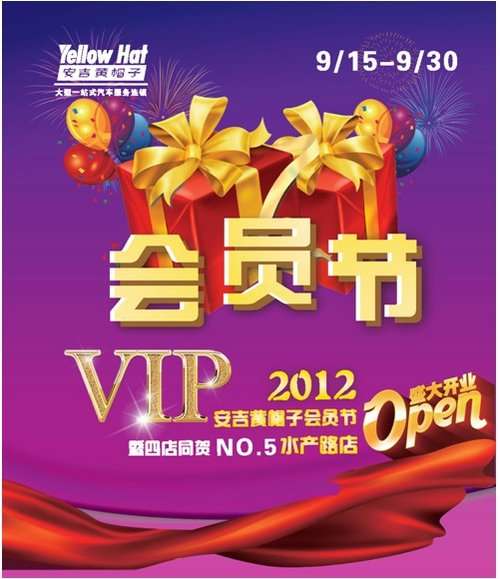 - 2017年8月5日每年初秋历来是安吉黄帽子有促销大动作的季节,一年一度的安吉黄帽子会员节于9月15日正式拉开序幕,在为期两周的时间里,安吉黄帽子组织了一大批物美价廉的商品和服务,为会员顾客准备了一个丰盛的购物大餐,我们带您看看有什么惊喜等着您吧。由于国家推出了节假日高速公路免费的措施,国庆出行尤其为车主所关注,本次活动中安吉黄帽子为长途远行的会员准备了轮胎、机油、导航和行车记录仪等一系列产品,而且超低的价格令人心动...