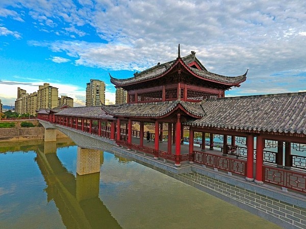 - 2017年8月4日嵊州市城东至旧城新建了一座慢行廊桥。该桥位于嵊州双塔大桥与高速公路桥(东二桥)之间,桥梁全长约237.6米,宽为6米,造型设计新颖,突出“慢行”理念,将漫步、跑道和自行车道“三线合一”,是新世纪以来嵊州市城市建设的首座仿古廊桥。\u00A0(原标题《嵊州新建仿古廊桥》。编辑金汉青)...