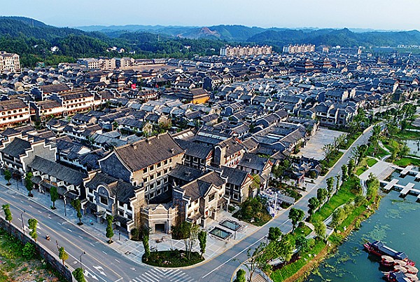 - 2017年8月4日7月3日下午,桃源县桃花源景区,航拍气势恢宏、古香古色的桃花源古镇。古镇总投资50亿元人民币,总建筑面积约70万平方米,按照国家5A级景区标准建设,以人文主题公园为主,配套住宅为辅,具备“吃、住、行、游、购、娱”六大旅游功能要素。湖南日报记者童迪摄...