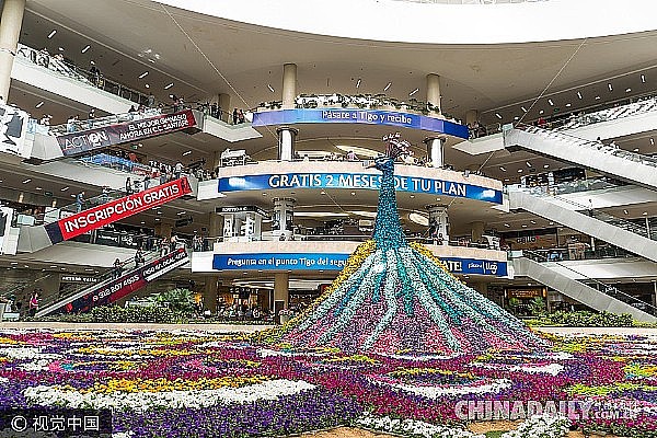 - 2017年8月4日中国日报网8月2日电(黄硕)当地时间2017年8月1日,哥伦比亚麦德林的圣达菲购物中心为迎接“鲜花节”展出一个由182万朵花打造的三维的孔雀,高达12米。哥伦比亚“鲜花节”开始于1957年。为庆祝节日,当地居民身着传统民族服饰,手拿各式各样的花盘参加游行。麦德林市是哥伦比亚的第二大城市,被誉为“花都”。每年8月上旬,哥伦比亚“鲜花节”都会在这里举行。...