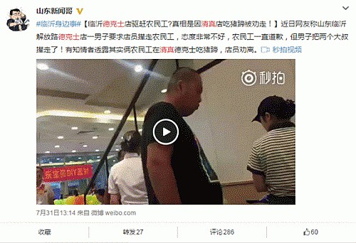 - 2017年8月2日这两天,“清真”又成为微博热点之一。而这次的主角是山东临沂的德克士清真餐厅。事情大致经过是,近日,网友称山东临沂的德克士餐厅是一家清真餐厅,有两个农民工在这家清真德克士餐厅吃猪蹄,于是被店员驱赶。一时间,网友们纷纷站出来谴责德克士,同时表示不再去德克士消费。在讨论这件事之前,笔者觉得有必要让大家了解一下德克士这间餐厅。首先,德克士是中国西式快餐特许加盟第一品牌,最大的加盟连锁舒食快餐企业。是一家主...