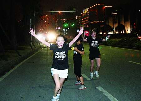 - 2017年8月1日跑到终点的跑友十分兴奋前日晚,南岸区南滨路,参加夜跑的“跑友”在出发前合影。本组图片由记者蒋雨龙摄夜幕降临,一天的辛勤工作后,你会选择什么方式度过夜生活?是去电影院看一场电影,还是和三五好友去KTV唱歌?在这座城市里,有这样一群人,他们来自各行各业,却因喜爱跑步走到一起,时常相约下班后出来夜跑。前日晚,这群“夜跑族”展开了一场疯狂的10小时100公里环江接力夜跑活动,并提前1小时完成。“预备,跑!...