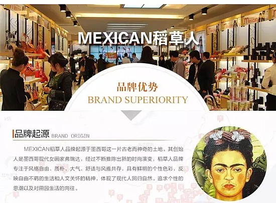 - 2017年7月27日年弗瑞达家族在墨西哥城(”广场附近开设第一个稻草人专卖店,经营皮带、钱包、皮包、烟具、箱包、袜子以及休闲服饰,产品风格休闲,极富个性,价格便宜。这种平价经营理念和极具个性的“稻草人”标识,深受当地人喜爱。随着连锁店铺的不断发展,设在弗瑞达家乡的原始厂,已不能满足日益增长的消费需求,首席执行官弗瑞达明杰欧,把目光投到了制造业日趋成熟的中国,通过的方式向中国企业订购皮件产品。由此中国制造的皮件产品,通...
