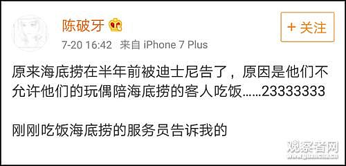 - 2017年7月22日网传迪士尼起诉海底捞用自家玩偶陪客海底捞回应:没有听说【观察者网文/于杨】海底捞,迪士尼,两家貌似风马牛不相及,但昨日,微博上有博主发布了这样一条消息,引发网友们围观热议。消息一出,...