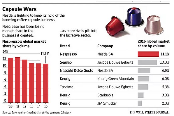 - 2017年7月18日最近,雀巢终于放弃只在自己门店里出售Nespresso咖啡胶囊的坚持,同意和德国连锁超市合作卖咖啡胶囊。合作的超市有三家:Saturn、MediaMarkt和GaleriaKaufhof,在这三家超市里顾客将会看到名字为“N-Point”的终端机,用机器选择好要买的胶囊之后,机器会打印出订单,顾客再拿着订单去柜台取货。不过,胶囊并不会因为不在专卖店卖就降价,雀巢依然掌握着定价权,在超市里卖的胶囊价...