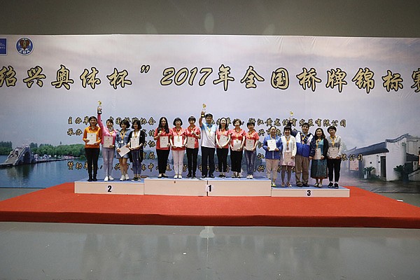 - 2017年7月15日5月10日,由中国桥牌协会主办,浙江省黄龙体育中心、浙江省桥牌协会、绍兴市体育局承办的绍兴奥体杯2017年全国桥牌锦标赛赛程过半,结束了第5天的比赛,七个项目的冠军产生。公开团体赛获奖队伍合影公开团体赛71队参赛,获得冠、亚、季军的分别是浙江钱塘(动享网)、北京京能1队、泛华俱乐部。女子团体赛31队参赛,冠、亚军被北京包揽,北京华远夺冠,北京八喜绿茵获得亚军,火车头获季军。混合双人赛113对参赛,...