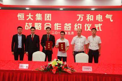 - 2017年7月12日家电消费网5月24日讯\u00A0\u00A0昨天家电消费网获悉,万和电气和恒大集团战略合作签约仪式于5月22日在广州恒大中心举行。协议约定,未来三年,万和电气将向恒大集团供应价值2亿元的热水器及厨房电器产品。在签约仪式上,恒大集团材料公司总经理苏鑫表示,恒大集团是集地产、金融、健康、旅游及体育于一体的世界500强企业集团,对供应商的挑选堪称“苛刻”。万和作为国内厨卫行业的知名品牌,产品质量和服务...