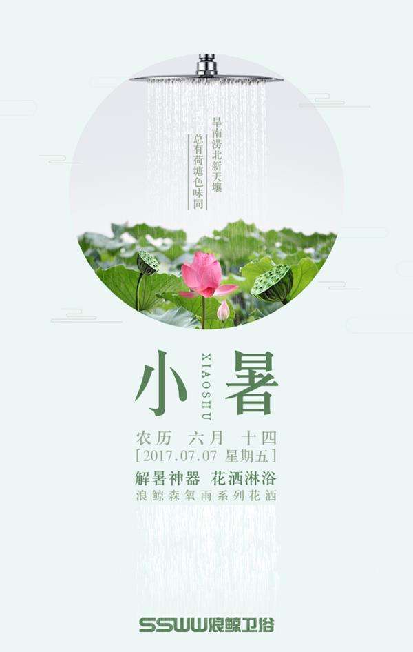 - 2017年7月9日\u00A0\u00A0中国陶瓷网讯\u00A0小暑,在灿烂的阳光下,悄然而至……\u00A0\u00A0作为二十四节气中的第十一个节气,小暑代表了初夏的来临。倏忽温风至,因循小暑来。\u00A0\u00A0小暑时节大地上便不再有一丝凉风,热浪跟随小暑的脚步铺满了整个大地。\u00A0\u00A0如果说走近小暑是一种热情的话,那么,走进小暑就是一种幸福了。小暑站在耕耘的脊背上,给我们些许启示,汗水...