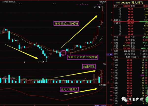 - 2017年7月8日前的行情就是超跌反弹的行情,这类型的股票一个个都是大牛股的机会,好比特力A,煌上煌,科大讯飞,这些都是近期表现非常给力的个股,这也是前面发文讲解最好的案例了!科大讯飞此股在前面不断的下探然后开始在底部止跌企稳,虽然中间也有反弹但是每次遇到辅助线压力就下探,并没有真正的有效突破,直到5月25日中阳线突破压力进入到上升通道后才启动中线的趋势,主力资金显示也是在大幅的流入,成交量也是陆续的不断放大,非常...