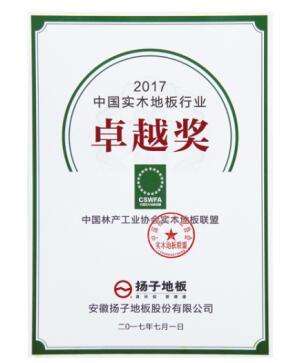 - 2017年7月7日2017年7月1日,中国林产工业协会实木地板联盟成立两周年庆典在中国地板博物馆圆满举行。庆典现场颁发了联盟企业年度卓越奖,扬子地板作为国家高新技术企业、中国实木地板联盟执行主席单位,以优势的产品创新能力和优秀的产品市场表现,荣获了此项大奖。中国实木地板联盟成员代表、中国林产工业协会秘书长石峰、浙江省地板协会会长徐伟、常州地板协会秘书长傅峰、清华大学经济管理学院副教授陈荣等与会嘉宾见证了这一荣耀时刻...